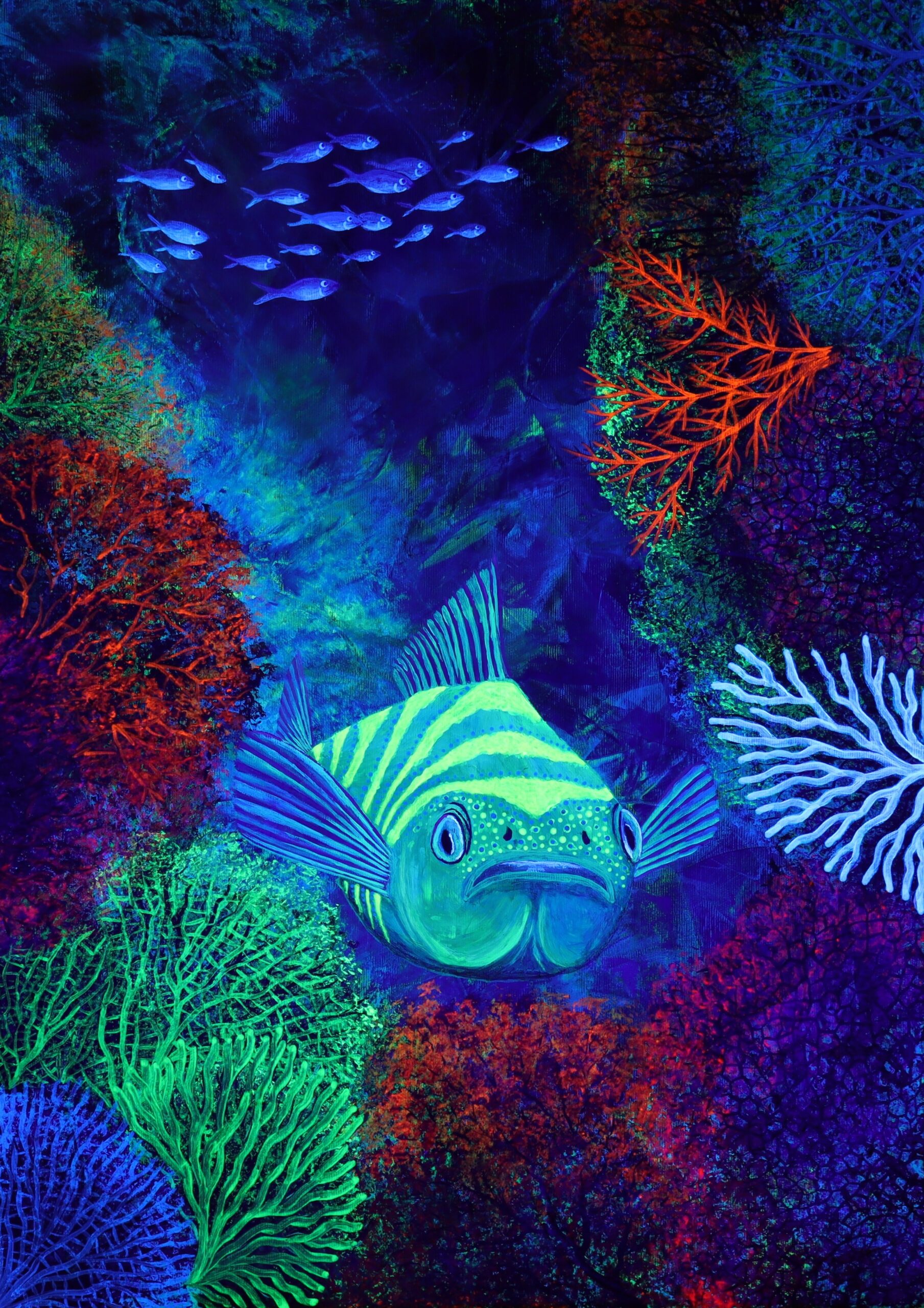„Unterwasserwelt“ 50cm x 70cm Acryl Bei natürlichem Licht Willkommen auf unserer Website.Hier entsteht demnächst ein passender Text zum Bild. Bei Schwarzlicht IWillkommen auf unserer Website.Hier entsteht demnächst ein passender Text zum Bild.